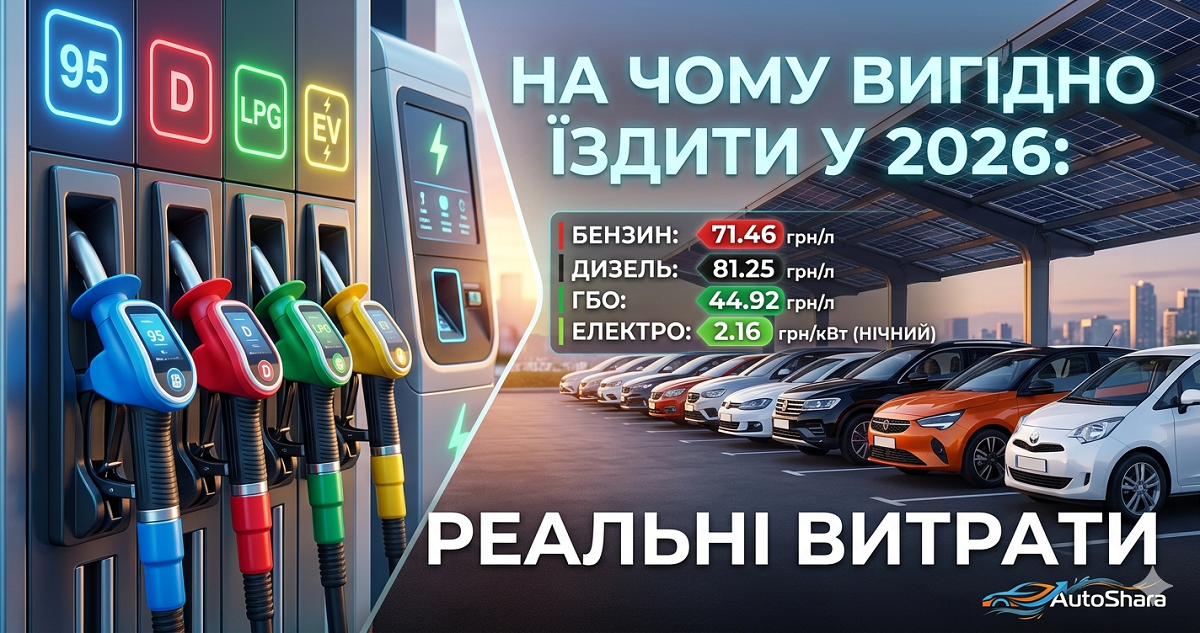 ⛽ На чому вигідно їздити у 2026: бензин, дизель, ГБО, електро — реальні витрати